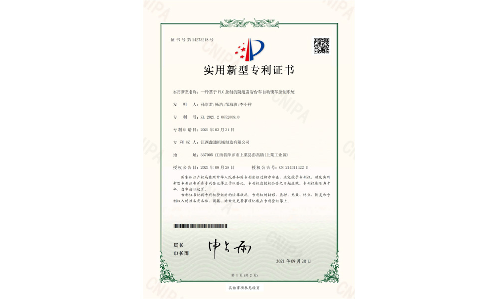 实用新型专利证书