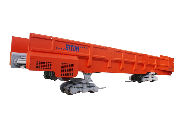 梭式矿车是一种出碴运输及自动卸载设备,既能单机运行又能搭接使用,具有结构合理,减震性强,运行平稳等特点,适用于铁路、公路隧道,水工涵洞,矿井平巷等施工场所,与牵引电机车配套使用,能发挥较好的运输效能,车箱内装有刮板运输机,可自动装卸碴石,装卸速度快,转向架采用钢板弹簧结构型式,减震性能好,运行 平稳,不易掉道。