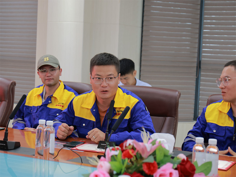 组织学员观摩生产线上设备组装的同时,通过工程师的现场教学,让学员们上手操作设备或拆装,更直观地感受运行原理及操作流程;不仅如此,公司特意采购了岩石,堆叠铺设后模拟巷道掌子面,供学员练习操作掘进和锚杆台车钻孔,以此提升学员的操作技能。