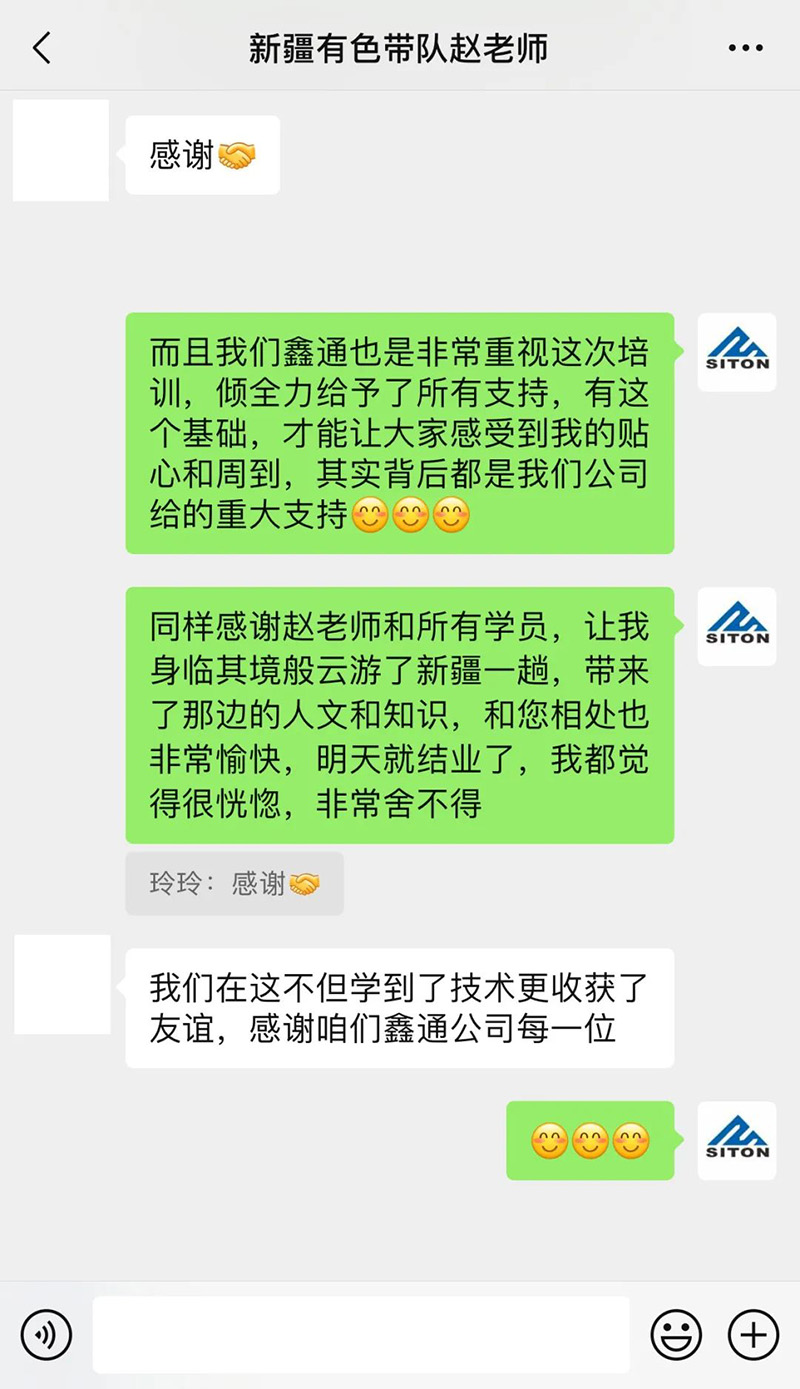 培训采用“理论结合实操”的模式开展,即使是骄阳似火的高温天气,都未曾影响到学员们的学习积极性,整个培训周期,“新疆有色”的学员们都保持着0缺席0请假的出勤记录,更有新疆有色“最美带队老师”---赵小玲老师的倾力协助,让各项学习计划得以更加精细地开展和实施,获得培训导师及鑫通工作人员频频点赞。