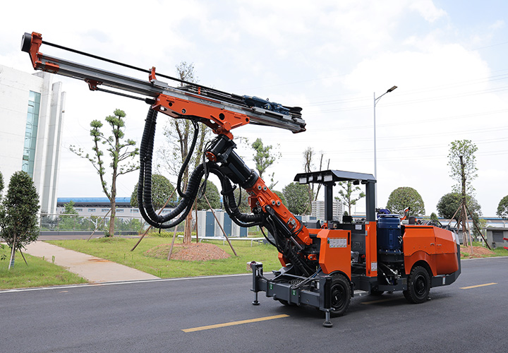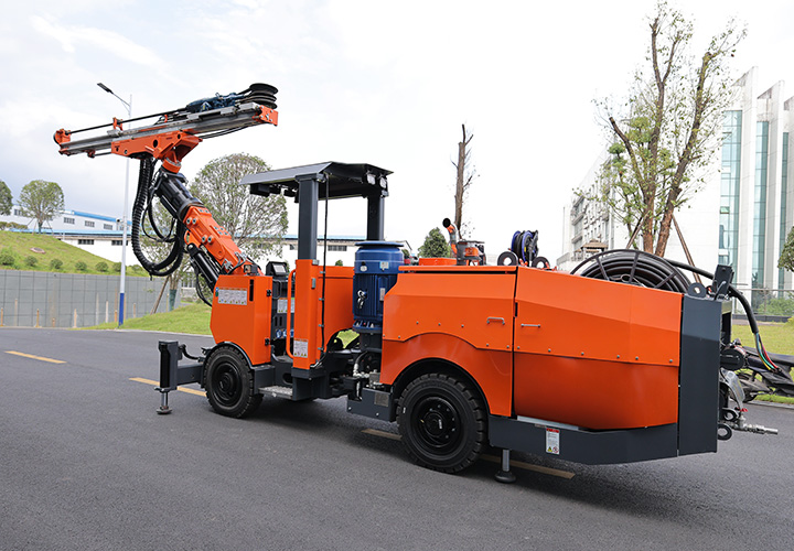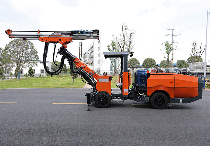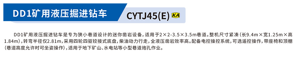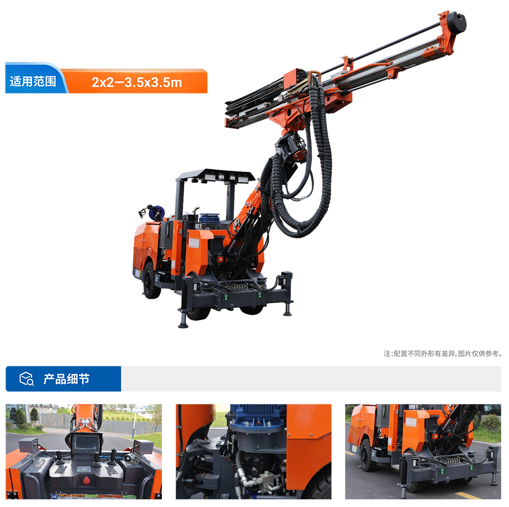 DD1矿用液压据进钻车是专为狭小巷道设计的迷你凿岩设备,适用于2x2-3.5x3.5m巷道。整机尺寸紧凑(长9.4mx宽1.25mx高1.84m),转弯半径仅2.81m,采用四轮四驱铰接式底盘,柴油动力行走,全波压凿岩效率高。配备电控操控系统,可逃通控操作,带座椅和顶棚(巷道高度允许时可坐姿操作),适用于地下矿山、水电站等小型巷道炮孔作业。