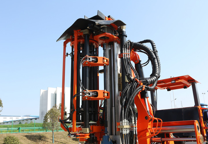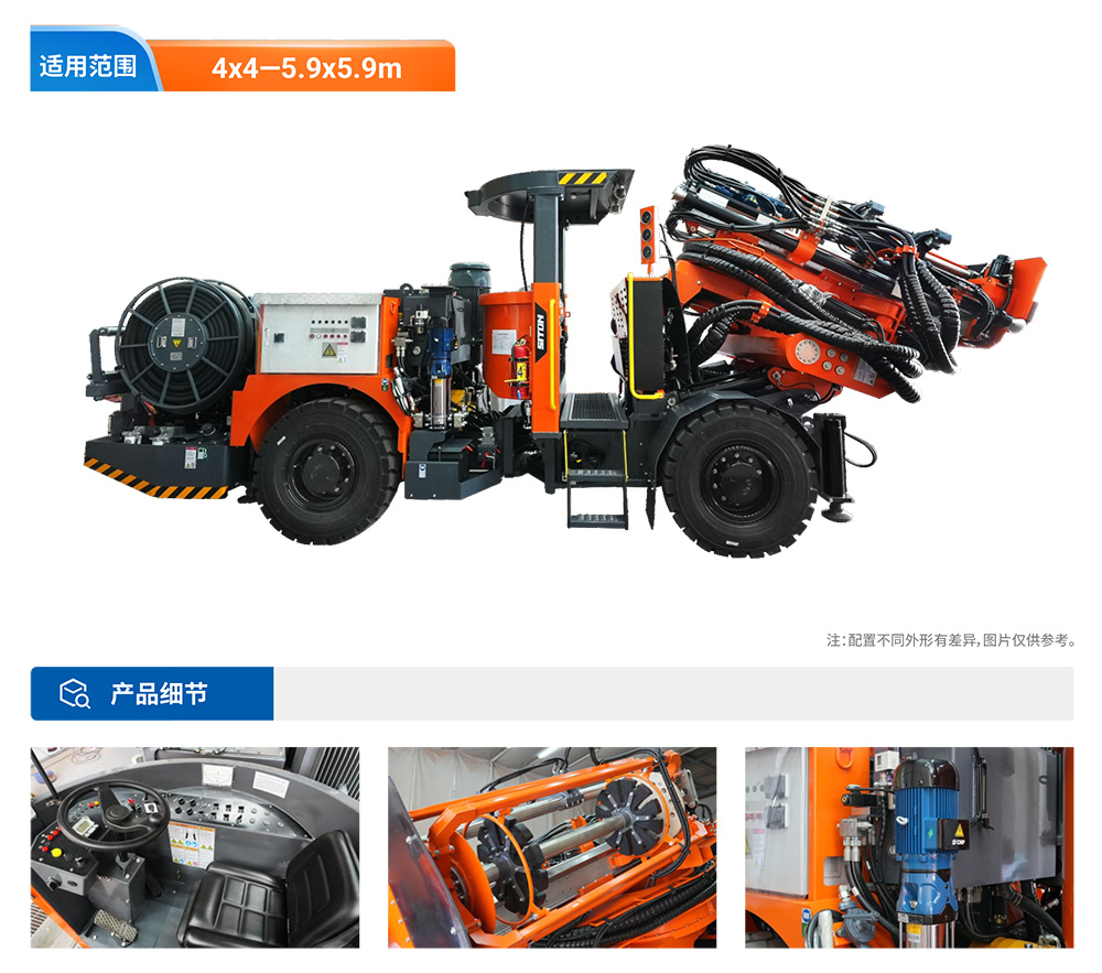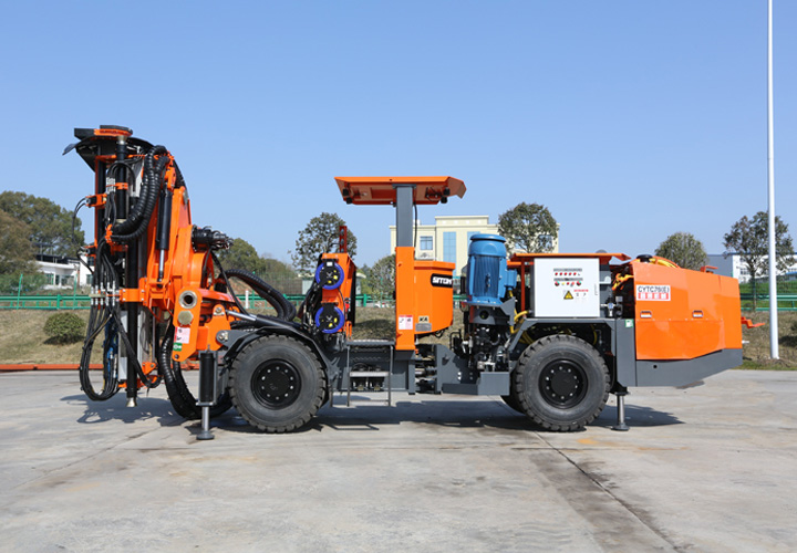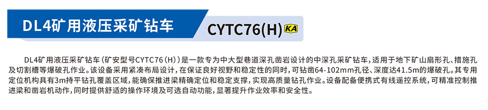 DL4矿用液压采矿钻车(矿安型号CYTC76(H))是一款专为中大型巷道深孔凿岩设计的中深孔采矿钻车,适用于地下矿山扇形孔、措施孔及切割槽等爆破孔作业。该设备采用紧凑布局设计,在保证良好视野和稳定性的同时,可钻凿64-102mm孔径、深度达41.5m的爆破孔。其专用定位机构具有3m持平钻孔覆盖区域,能确保推进梁精确定位和稳定支撑,实现高质量钻孔作业。设备配备便携式有线遥控系统,可精准控制推进梁和凿岩机动作,同时提供舒适的操作环境及可选自动功能,显著提升作业效率和安全性。