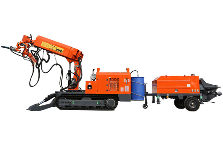 HP6履带式矿用混凝土喷射车的矿安型号为CPF-80LY,是针对国内小型矿山研发的一种湿喷设备,专为解决3m及以下巷道喷浆支护而设计研发,采用机械手及拖泵分体式设计,由矿用混凝土辅助喷射车与HBKT10/8.5-22S矿用混凝土泵组成。整机采用无线遥控、履带式行走,由机械手臂用过遥控控制喷射无死角作业,根据工地施工需求可满足湿喷喷浆支护或潮喷支护。