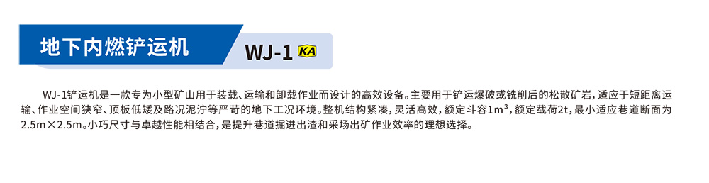 WJ-1铲运机是一款专为小型矿山用于装载、运输和卸载作业而设计的高效设备。主要用于铲运爆破或铣削后的松散矿岩,适应于短距离运输、作业空间狭窄、顶板低矮及路况泥泞等严苛的地下工况环境。整机结构紧凑,灵活高效,额定斗容1m³,额定载荷2t,最小适应巷道断面为2.5mx2.5m。小巧尺寸与卓越性能相结合,是提升巷道掘进出渣和采场出矿作业效率的理想选择。