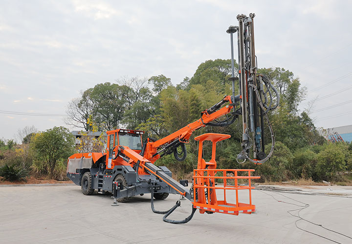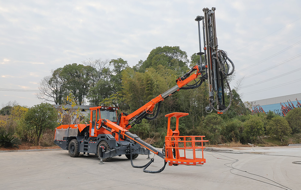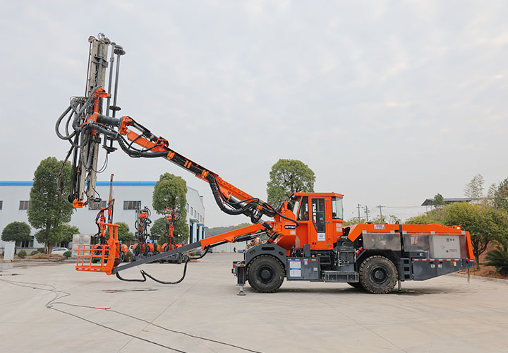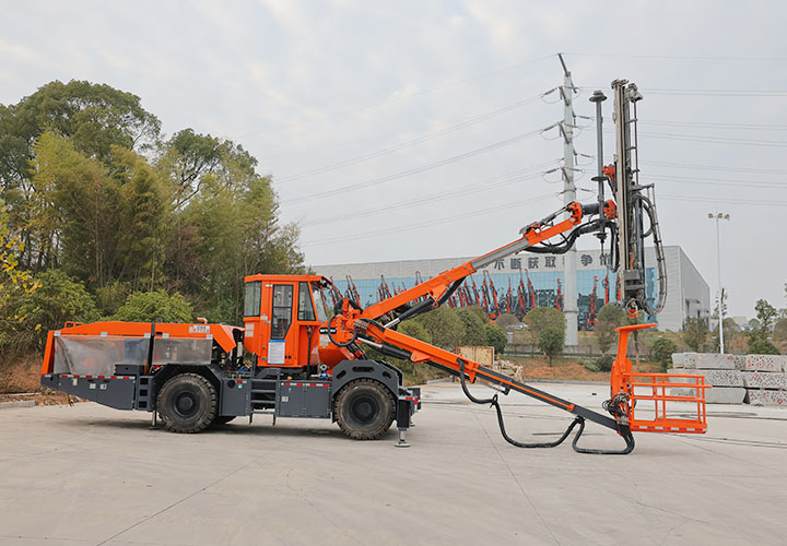 DS8钻注锚一体机能实现隧道锚杆施工钻孔,塞锚杆、注浆全机械一体化作业,设有1个锚杆钻臂及1个高空作业平台臂,其机械化程度高。工作范围广、作业速度快等特性,应用于铁路、公路、水利工程、国防等隧道锚杆施工。柴油机供行走,速度12Km/h,爬坡能力强:采用直接液压控制,拥有自动防卡钎功能,可旋转伸缩式钻臂,能满足掌子面、顶邦、侧邦等任何角度锚杆施工。设有车载搅拌及注浆系统,满足注浆需求,采用封闭式驾驶室作业,环境舒适度好,多功能锚杆机头设有多种锚杆类型选择。