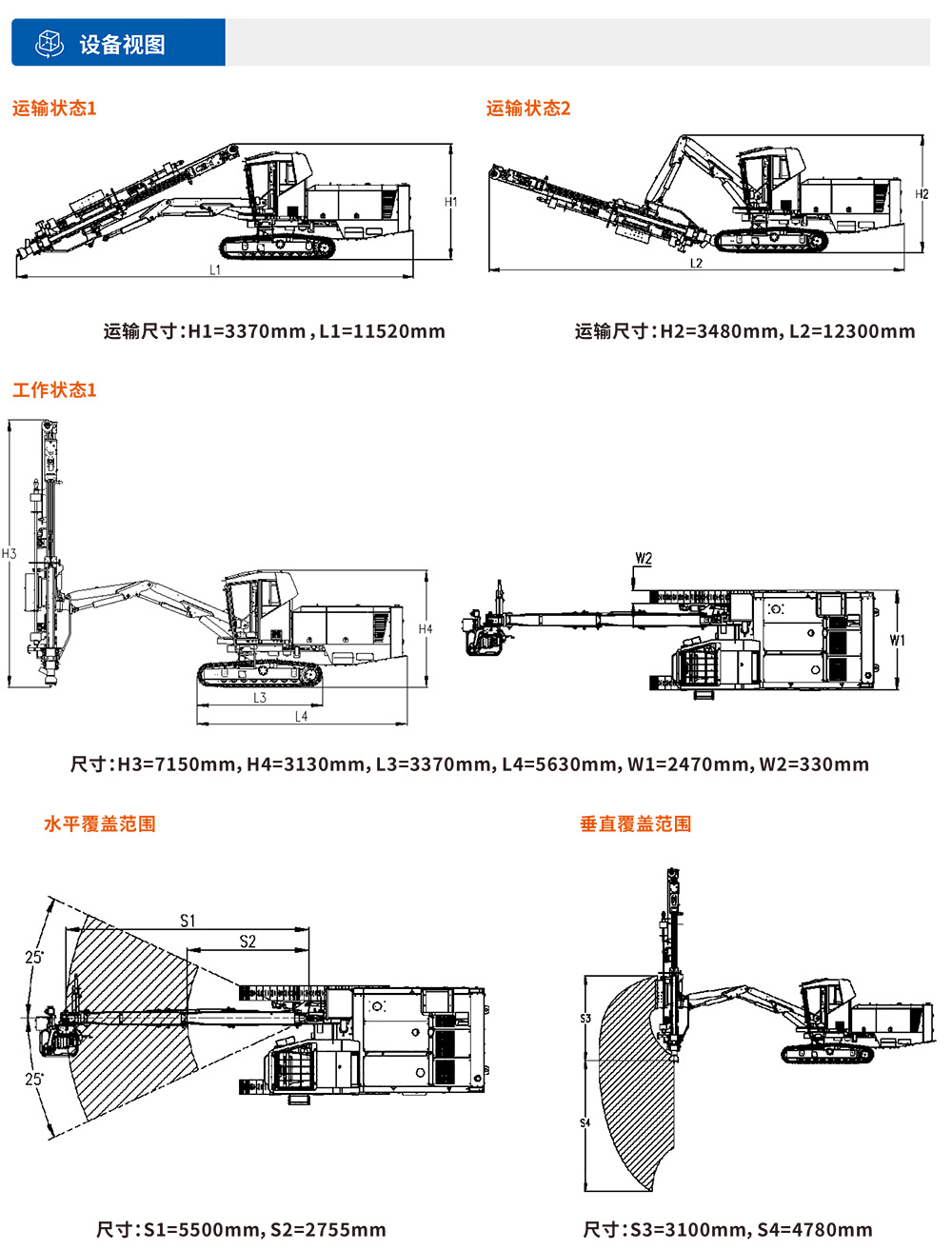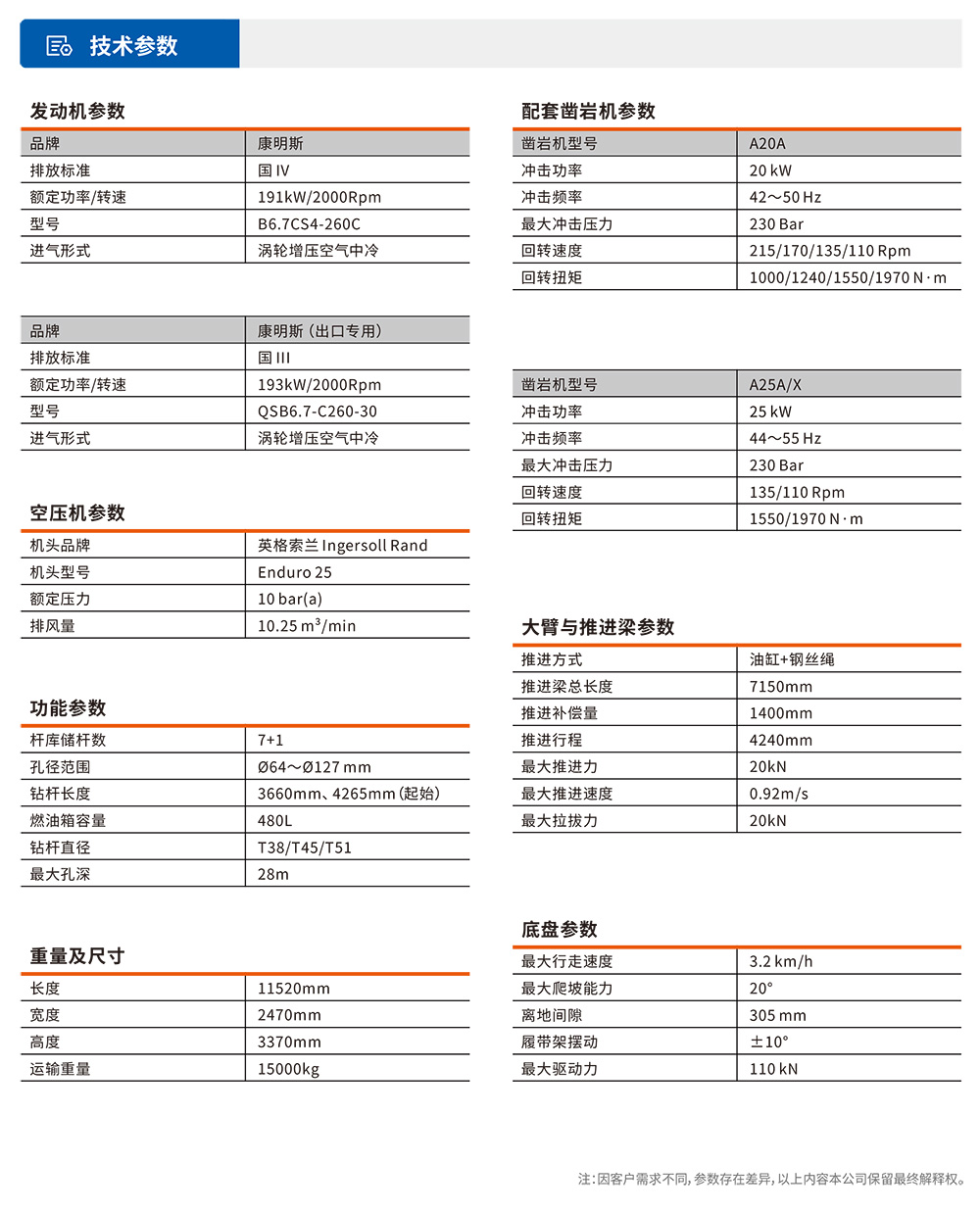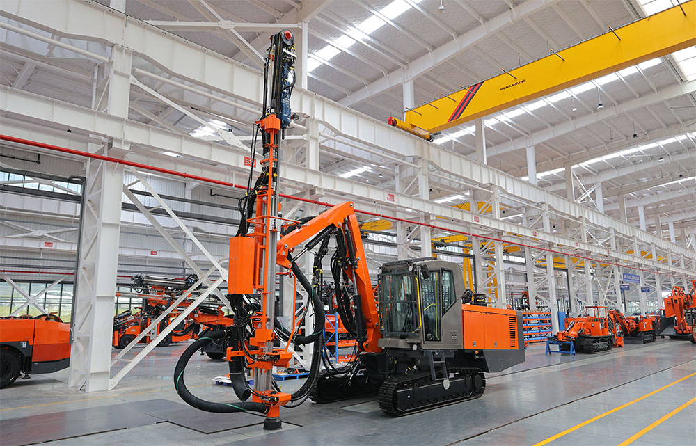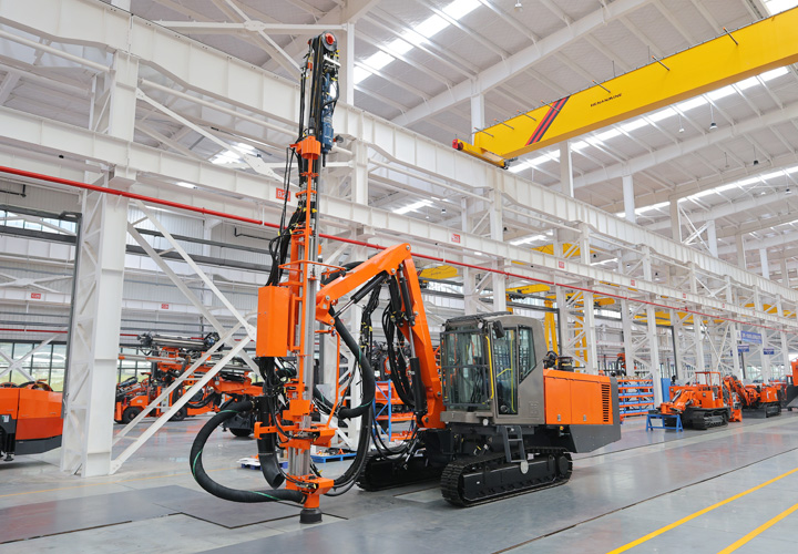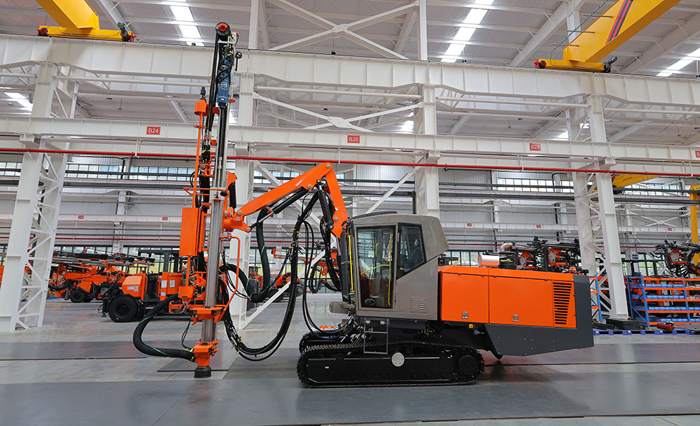 XT102露天顶锤钻机产品特点:该钻机应用于采石场,露天矿山开掘,水电施工,公路施工和岩石工程作业,以及其它机械化钻孔作业工程。该液压钻机使用直径为T38/T45/T51的接卸式钻杆,钻凿垂直、倾斜的直径为64mm至127mm的孔。最大钻孔深度可达28m。高强度的折叠式钻臂设计和加大的油缸使得钻机具备更大的有效覆盖范围。双扶杆装置保证钻孔直线度,提高成孔率。