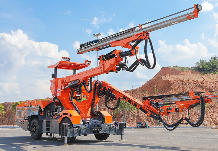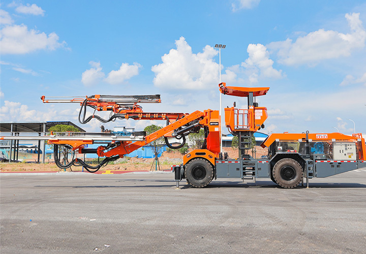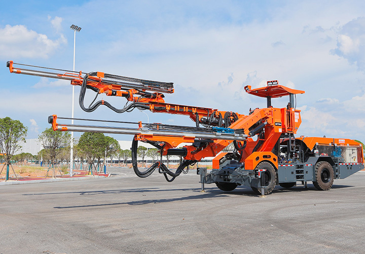 Z20系列全工法直臂凿岩台车是为多台阶同步、台阶法、全断面等全工法开挖而设计的一款数字直型平动双臂开挖凿岩台车,解决了传统凿岩台车不能同时满足一条隧道多种工法开挖施工需求的缺陷。能满足多台阶微步开挖有能满足全断面开挖的作业能力,使设备适应开挖工法及工况更广泛,重新定义隧道多臂台车价值。根据不同用户需求该系列设有3款:Z20标准型、Z20C(带吊篮)、Z20E(智能全工法直臂凿岩台车),供不同工况需求用户选择。是专为高速高铁、水利水电工程、以及国防等中大型隧道掘进钻孔,作业而研发制造的凿岩装备,满足凿岩掘进需要的各种炮孔、锚杆孔、小导管支护、注浆孔等。该机工作时采用全液压驱动,电液比例阀控系统遥控控制钻臂凿岩,动作柔顺定位迅速、凿岩速度快;柴油机供行走,四轮四驱。动力强劲、转场灵活,整机结构布置紧凑、重心低、机动灵活、系统稳定,不仅提升安全保障和工作效率,能降低劳动者的工作强度。
