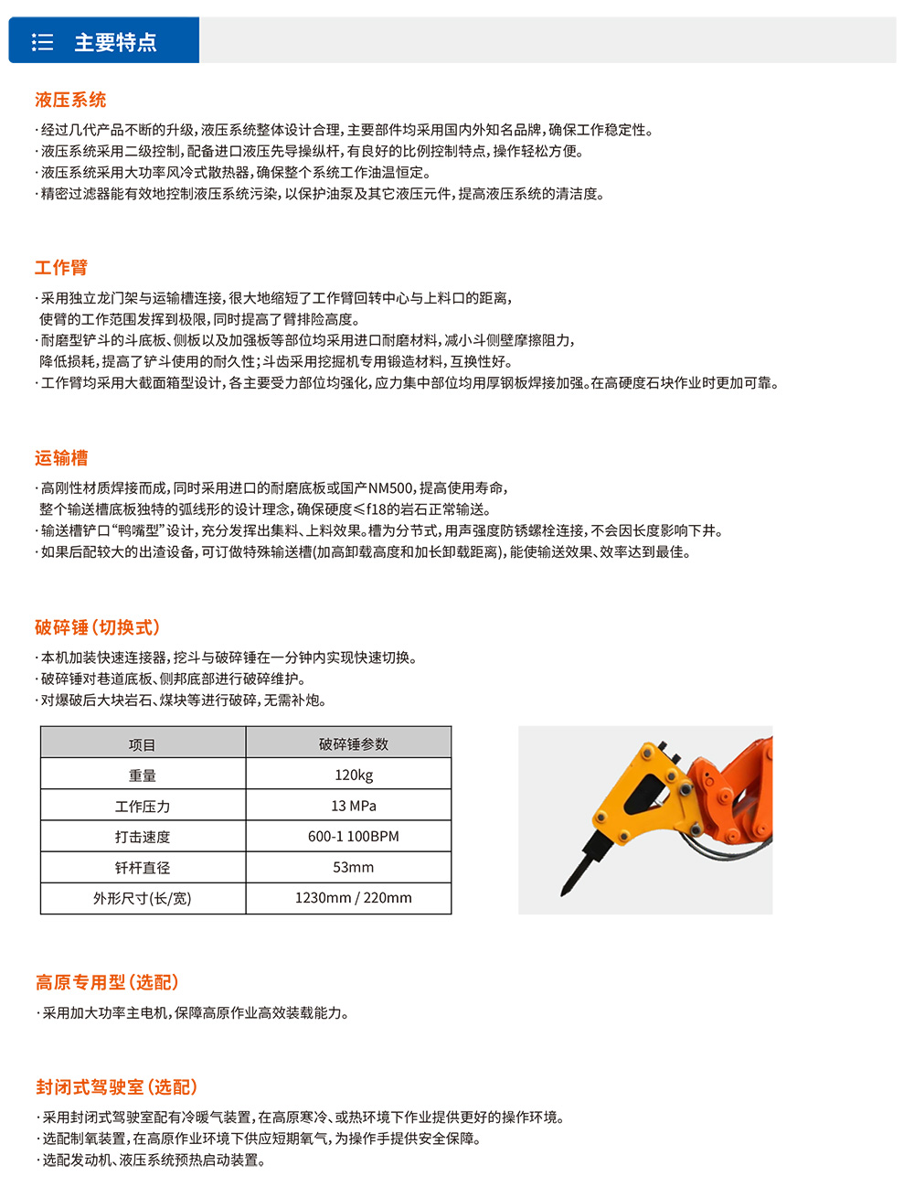 中⼩型履带式挖掘装载机(扒渣机)主要以60-150型为主,专为矿⼭、引⽔、国防、⾼速或⾼铁辅助隧道⽽设计研发,具有经济性较⾼,设备灵活性较好的特点。设有32°⼤坡度专⽤机型、普通平巷机型、双动⼒、⾼原专⽤等多种功能机型可选择。可以全断⾯⼯作,不留死⻆,不需⼈⼯辅助清理⼯作⾯。运渣采⽤链条刮板式,输送运转平稳,排渣能⼒强,且采⽤半封闭式装配⽅式,维护⽅便。