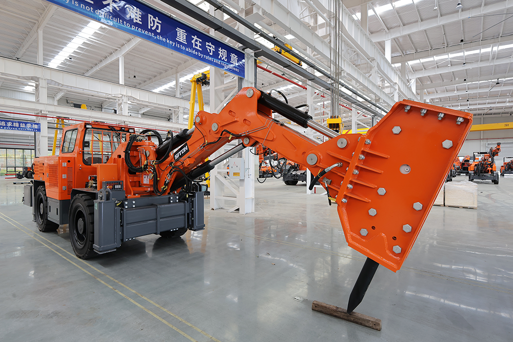 UPT-96/2500矿用破碎台车主要用于金属非金属地下矿山,采石场等爆破作业后,对大块矿石需要进行二次破碎满足后序的铲装和运输工作,即破碎作业。是常规采矿工艺中的重要组成部分。我同研发的UPT-96/2500矿用破碎台车更适合地下采掘作业。该产品具有破碎能力大。工作臂灵活、运行平稳、噪声低、性能可靠;能极大改善井下工作环境安全,能有效减轻操作手劳动强度,提高工作效率。在保证安全生产前报下,为客户提高一定的经济效益。