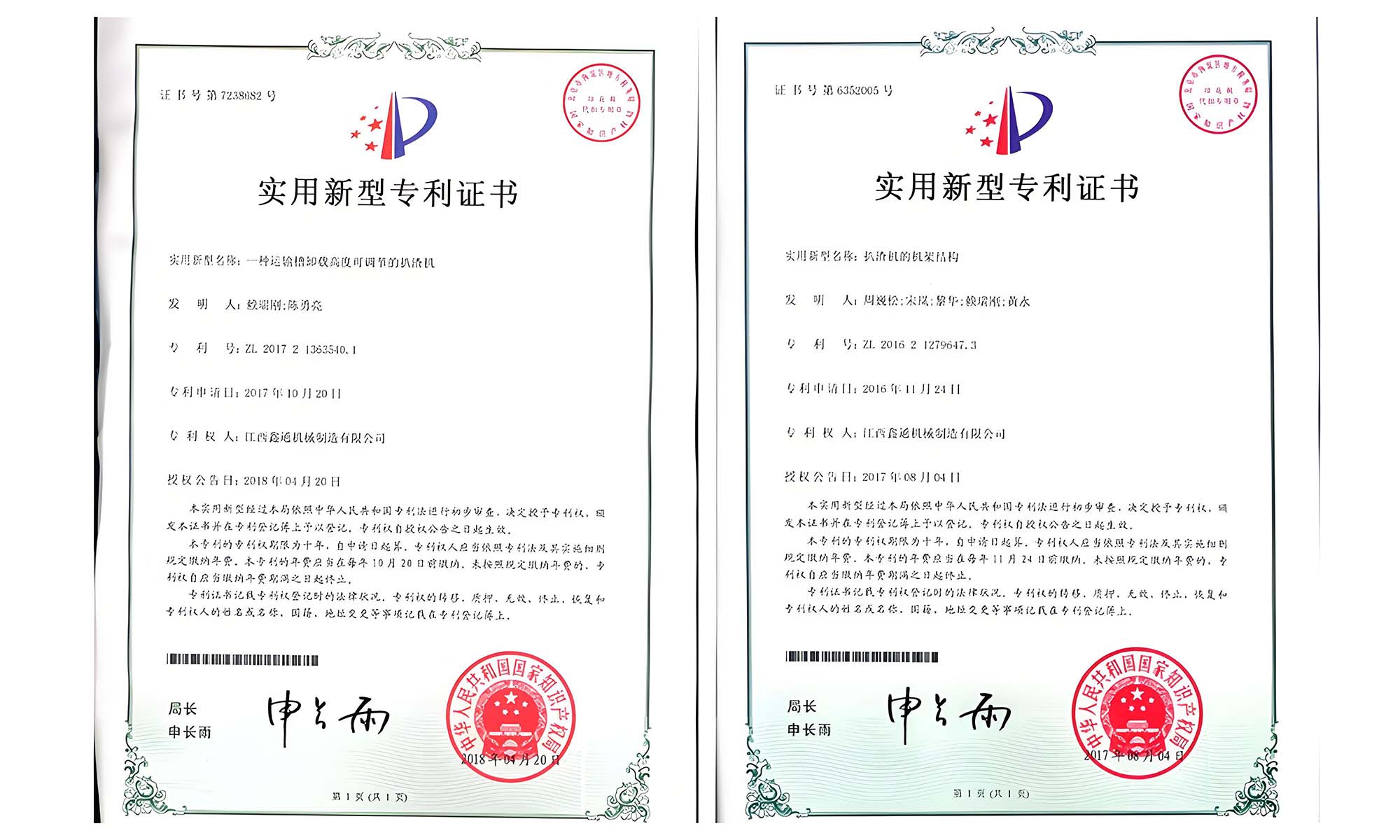 实用新型专利证书