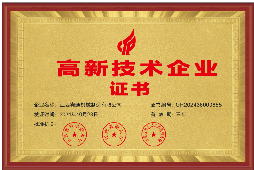 【喜报】江西鑫通连获“高新技术企业”“智能制造标杆企业”两项省级认证