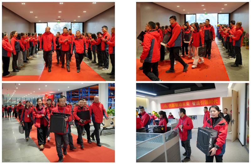 随着常务副总经理刘建宣布正式入驻智慧工厂,声声礼炮中,员工们以激昂的热情、归零的心态搬入新办公场地。
