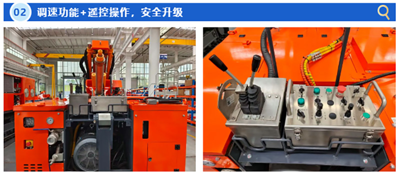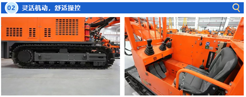钻机回转具有调速功能,可根据不同岩层状况调整钻速,按需调节钻速(0-46r/min)。选配遥控装置,操作更便捷,操作人员可远离危险区域,兼顾效率与安全。
