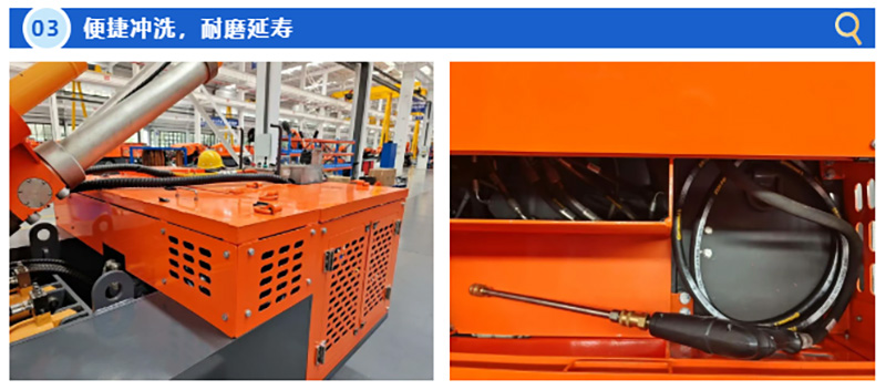设备配备冲洗装置,清理作业过程中产生的岩浆,避免岩粉摩擦损坏钻架上的活动部件,提高设备使用寿命。