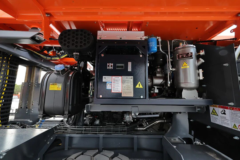 搭载康明斯、上柴国四排放柴油发动机提供行走动力,四驱轮胎行走速度可达16km/h,适应15°坡度及4000米高海拔转场;作业时切换至纯电驱动,三臂凿岩零排放、无污染,积极响应国家“双碳”战略。